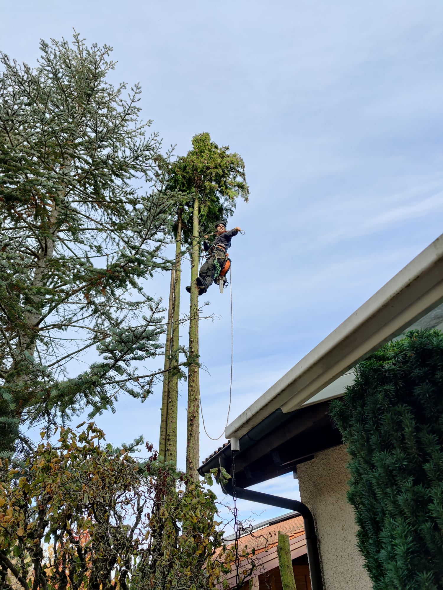 Als Spezialisten für die Seilklettertechnik (SKT) erreichen wir auch schwer zugängliche Baumkronen, ohne große Maschinen einsetzen zu müssen. Diese schonende Methode ermöglicht es uns, präzise und effizient zu arbeiten, ohne die Umgebung zu belasten.